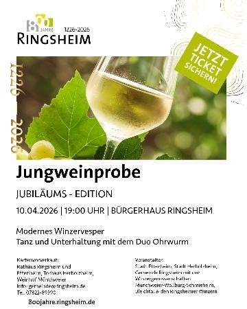 In diesem Jahr steht die Veranstaltung unter einem besonderen Zeichen: Im Rahmen des Jubiläums „800 Jahre Ringsheim“ wird die Jungweinprobe als Jubiläumsedition gefeiert. Die Gäste erwartet ein genussvoller Abend mit erlesenen Weinen vom Kaiserberg, präsentiert